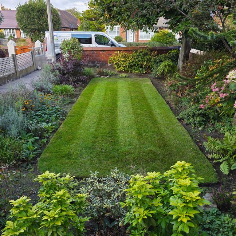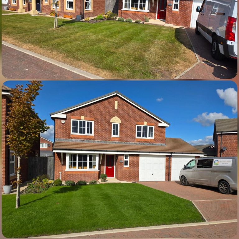 The lawn is thick, healthy, and green, I honestly wouldn’t dream of going back to doing it myself!